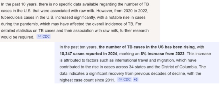 - The November post claimed that ‘The White Plague’ (tuberculosis or TB) ‘Returns’ with increasing access to raw milk.