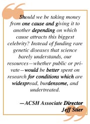 On May 21st ACSH associate director Jeff Stier's commentary "Pretty Woman Doesn't Make Pretty Policy" appeared in the New York Sun. The editorial raises questions about how celebrity status instead of health priorities is used to attract funding for health causes. On June 18th The Gary Nolan Show interviewed Mr. Stier on the editorial. The program is syndicated to about 50 markets around the country.