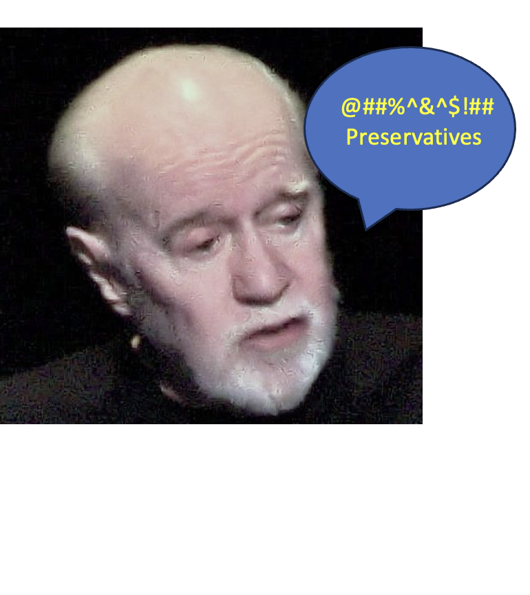 As the farcical organic/back-to-nature movement continues to erode brains in this country, George Carlin's seven-word list needs to be updated. You know the first seven. I'm going to add the eighth: Preservatives.