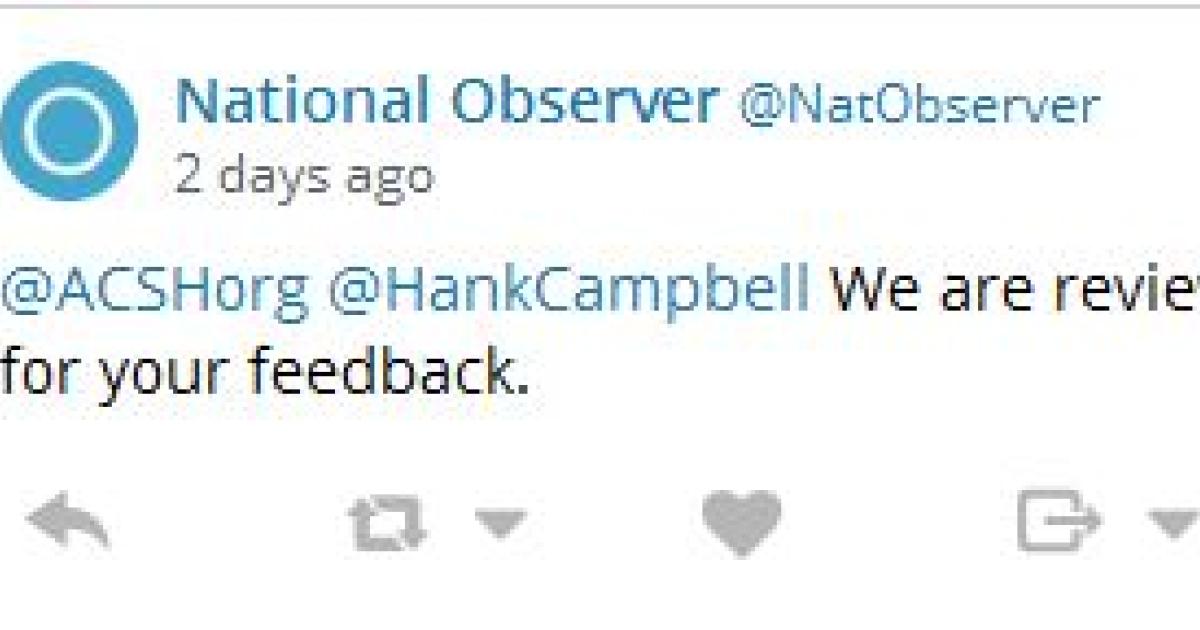 1. A website called the National Observer is an "online only" publication whose editor has been accused of political boosterism and using her publication to attack opponents of her family. A weird, disjointed op-ed by an alternative medicine practitioner easily tells you what political side of the aisle they serve. The author is firmly against biology, specifically genetically modified organisms, and embraces every crank out there, from Zen Honeycutt of Moms Across America to retracted fraud Gilles-Eric Seralini.