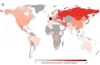 The European region contains 7 of the top 10 vaccine denial populations. French anti-vaccine sentiment (41 percent) was over 300 percent higher than the global average (12 percent) so even uneducated peasants in the developing world understand immunology better than French elites. Southeast Asia led in confidence. In Thailand, only 6 percent thought vaccines were harmful, Indonesia had 3 percent, while in Bangladesh only 1 percent thought vaccines were unsafe.