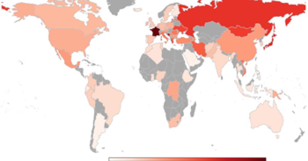 (1) France was followed by Bosnia & Herzegovina (36%), Russia (28%), and Mongolia (27%.) Greece, Japan and Ukraine all had 25%.