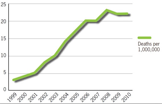 Deaths in the US caused by C. diff. 1999-2010 Source: CDC