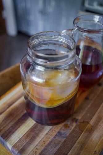 So what is this miraculous elixir? It's sweetened tea that's been fermented by a combination of bacteria and yeasts acting together to use the sugar in the tea (the sugar is used by these microorganisms to make energy). Either black or green tea can be used as a starter for kambucha. Supposedly this symbiosis produces beneficial acids, enzymes and what have you. Oh, and did I mention that one of the results of fermentation is alcohol? The exact strains of bacteria and yeast can vary, depending on what one starts with. The "mother" or initial plaque of the symbiotic organisms (shown below)