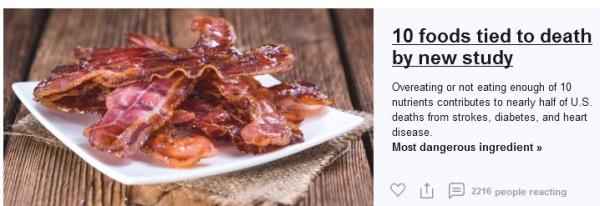 From Yahoo: Bacon, soda & too few nuts tied to big portion of US deaths