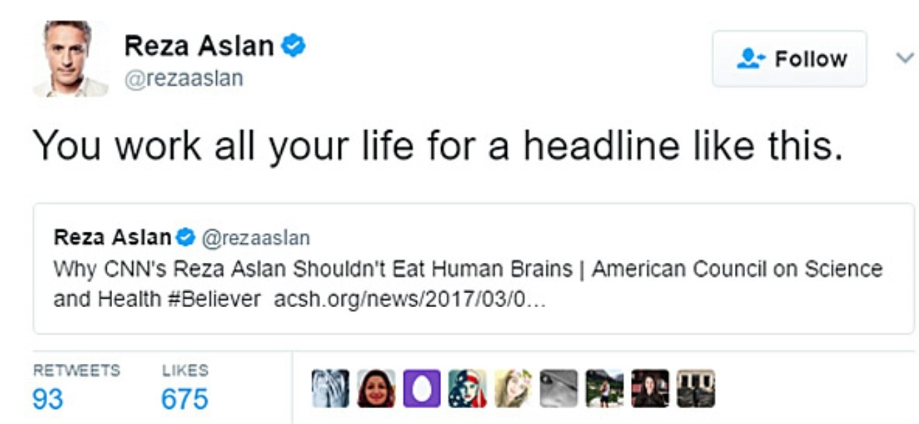 The Marshalltown - actually, our article cautioning CNN's Reza Aslan about the risks of eating human brains was discussed from Australia to Zimbabwe.