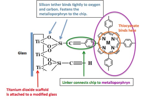 Murphy and his colleagues described a very sensitive method of detection, using materials similar to dye-sensitized solar cells, can measure low concentrations of thiocyanate in water.”. When thiocyanate is present, it binds to and reacts with the iron in the metalloporphrin. The sensor turns from purple to gray and generates a tiny electrical current. Measurement of the amount of current can quantitatively determine the amount of thiocyanate that is present in the water. Very cool.