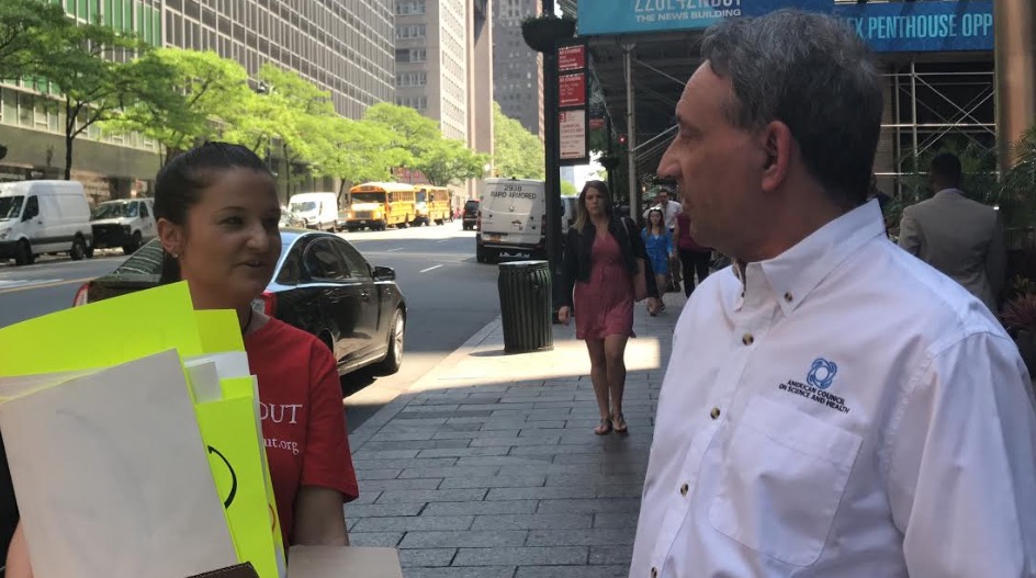 Yours truly and AHF spokeswoman Jessica Reinhart. The ACSH shirt used to be President Hank Campbell's. He will never see it again.