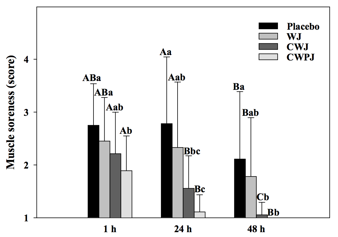 Furthermore, when the volunteers drank the placebo, their blood tests revealed a higher concentration of myoglobin (a biomarker of muscle damage) than when they drank CWPJ. The cocktail, therefore, appeared to reduce muscle damage.