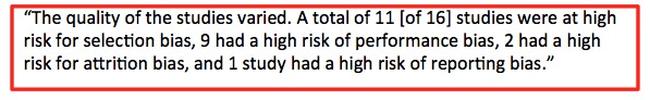 This sentence alone is reason enough to flush this paper down the McToilet. They started with 837 references, threw out 821 of them, and ended up with a group of the "best" 16, 11 of which had serious flaws. Unreal.