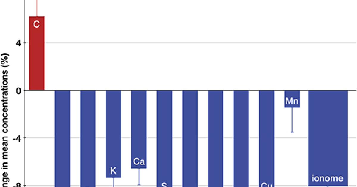 - In temperate, cool-season plants like rice and wheat (known as C3 plants) elevated concentrations of atmospheric CO2 resulted in plants with less protein, more carbohydrates and reduced amounts of 25 important minerals (collectively referred to as the ionome)