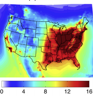 But here's the catch: Look at the scale. According to it, the worst air in America contains 16 micrograms (μg) of small particles per cubic meter of air (m3). The World Health Organization's PM2.5 standard is an annual average of 10 μg/m3. The study's own data show that air quality for roughly half the U.S. meets the health standard set by the WHO, while air quality for the other half exceeds it, but just barely. The only reason this map looks bad is because the authors deceptively colored it with ominous shades of red to make it look as if air quality in America is unhealthy.