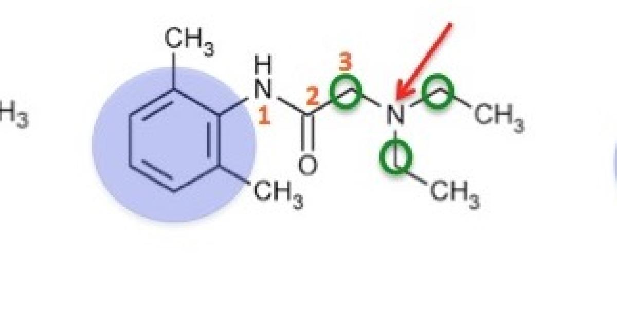 There's a lot going on in Figure 1, but it's not that difficult to understand. The pharmacophore (the portion of the molecule responsible for its pharmacological effect) consists of a benzene ring (blue circle), which is 3-4 atoms (orange numbers, also called a spacer) away from a tertiary amine—a basic nitrogen atom (red arrow) that is bound to three carbon atoms (green circles). Think of it as ammonia in which all three hydrogen atoms have been replaced by methyl groups). While all three share the same pharmacophore, there is a profound difference in the duration of action. Once again, chemistry (Figure 2).