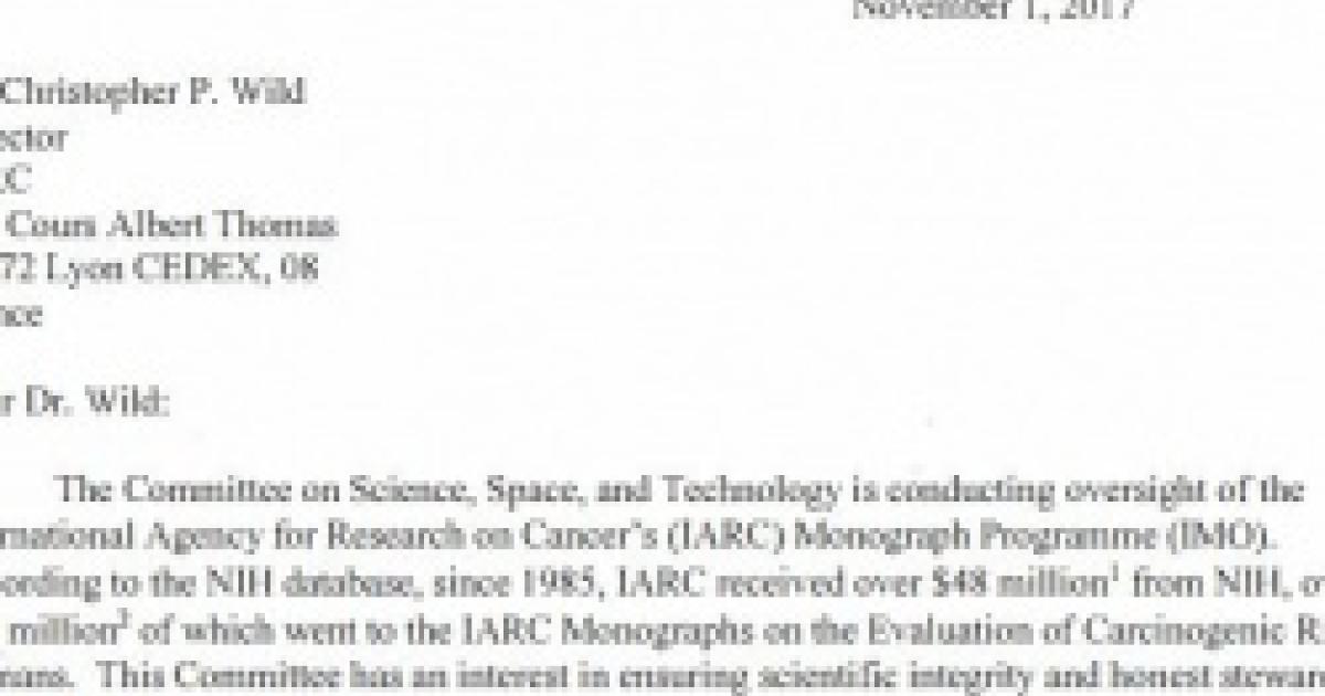 But Congress is not going to be stonewalled so easily. If IARC were an American agency, it probably would never have gotten to this point. If IARC were an American company, Portier and IARC's leader, Chris Wild, Ph.D., would be facing the prospect of jail time. Instead, Wild was seemingly removed from his position before WHO repositioned it as being a very, very, very early announcement that he would not be continuing after his term expires. The U.S. Congressional Committee On Science, Space, And Technology is still not appeased. Last week, Chairman Lamar Smith called on IARC to respond to allegations about their manipulation of the Working Group findings. IARC is trying to buy time, claiming Congress did not go through their proper procedures...which means they are trying to formulate answers that won't call into question their cancer claims about bacon, hot water, diesel emissions and plenty of other findings. The group says they will only answer if the U.S. State Department goes through American representatives sitting on IARC's governing council.