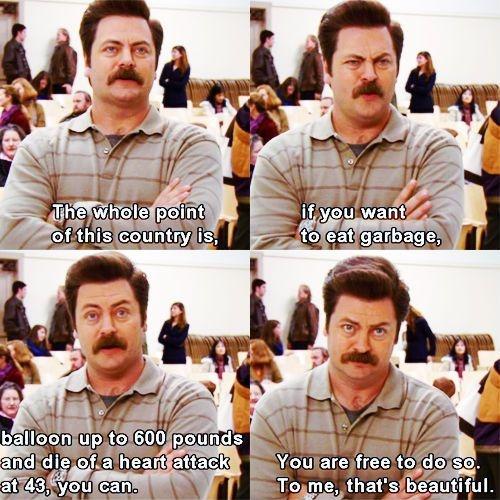 "The whole point of this country is if you want to eat garbage, balloon up to 600 pounds and die of a heart attack at 43, you can! You are free to do so. To me, that’s beautiful."
