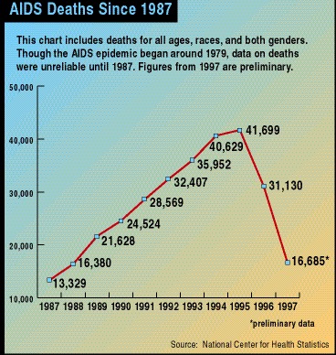 In the US, deaths from AIDS began to decrease in 1995. Source: National Center for Health Statistics