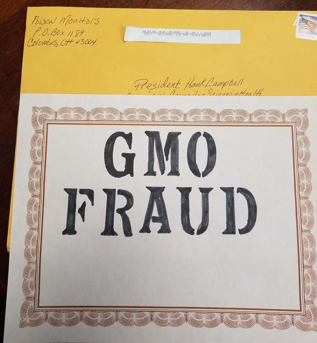4. We got fan mail. Some person pretending to be a group operating out of a PO Box for their bunker in Ohio sent me something that looks like a diploma. I guess I have finally graduated to being a GMO Fraud after writing about the science of agriculture for 12 solid years. I don't know what I was before, GMO Apprentice? Assistant Fraud?