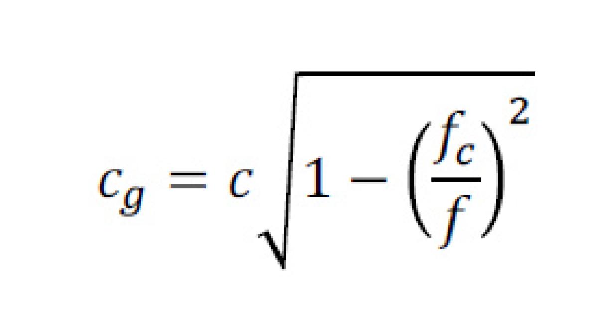 where fc is the cutoff frequency and f is the frequency of the acoustic wave. Note that the group velocity goes to zero below the cutoff frequency, i.e., acoustic energy cannot be propagated by a mode below its cutoff frequency. Far above the cutoff frequency acoustic energy is transported by the mode at the speed of sound in open air, and as the cutoff frequency is approach from above the propagation speed decreases, going to zero at the cutoff frequency,