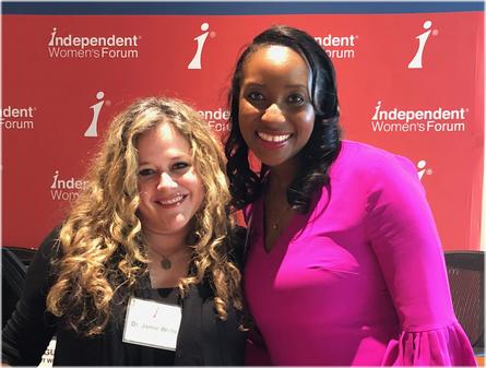 On the left, Dr. Wells and IWF Senior Policy Analyst Patrice Lee Onwuka. On the right, Dr. Wells with Julie Gunlock, director of the IWF Culture of Alarmism project.
