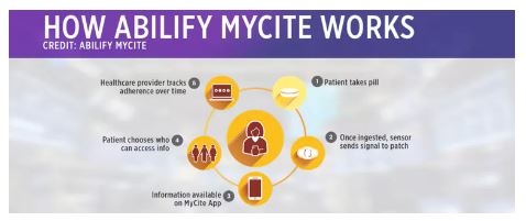 Otsuka Pharmaceuticals and Proteus Digital Health won Food and Drug Administration approval to sell Abilify MyCite in late 2017. This drug contains a digital sensor embedded within the powerful antipsychotic drug Abilify, the brand name for aripiprazole, which is used to treat schizophrenia, bipolar disorder and major depressive disorder. The goal of the digital sensor is for doctors to monitor their patients’ intake of Abilify MyCite remotely and ensure that the patient is adhering to the correct drug dose and timing.