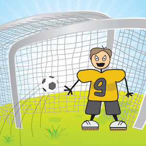 This penalty kick will decide it all. Sweat is dripping down the kicker's face. The goalie's too. They glare at each other. The kicker takes a deep breath. All the pressure is on him. The referee blows his whistle. He trots a few steps toward the ball, aims, and kicks as hard as he can. The goalie dives to the left, but...
