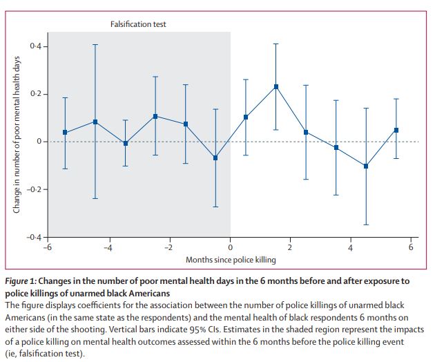 As I have pointed out, there are glaring issues with this study from design to lack of consideration of confounders. Future research may be warranted to examine the causal effect of police killings on mental health of black Americans, but this particular study does more to create a narrative than to scientifically prove that relationship.