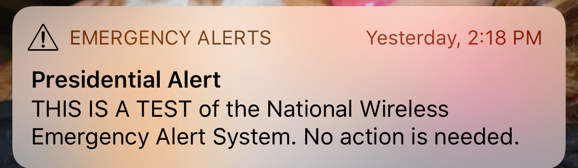 Yesterday, most of the nation received a test of the following alert on our cell phones: