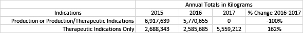 Overall therapeutic use increased as those antibiotics designated for both production and therapeutic indications moved into the therapeutic only category. So, work remains to be done. The most sustainable way forward is by reducing the disease burden on our feed animals, and that will require us to change the environment in which they are raised and providing other preventative measures, like vaccinations, a topic I have mentioned in the past.