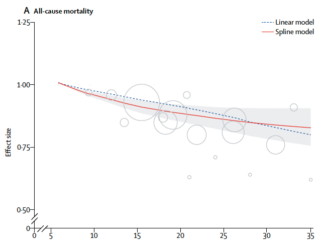 In contrast, the studies that looked at glycemic index demonstrated a benefit, but certainly not as dramatic a dose-response (the shape of the curve); the exception here would be for individuals with diabetes, where higher blood sugar is more of a problem.