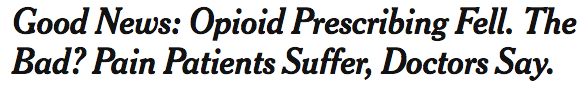 While I appreciate the Times' long overdue recognition of the plight of pain sufferers, the headline of this article is only half correct - There *is* no good news on prescribing. There is an indisputable inverse relationship between the availability of prescription opioid analgesics and the number of overdose deaths, which is more than an association - it's cause and effect.
