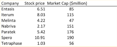 What do investors think about antibiotics companies? Not much. Paratek, at a price of just $5.42 has a 36% short ratio. That is, 36% of tradable shares are being shorted by skeptical investors. Market caps under $200 million do not bold well either. Melinta is selling four antibiotics – they made $96 million in total revenue in 2018. Anyone who doubts that the antibiotic market is broken needs only ask the investors.