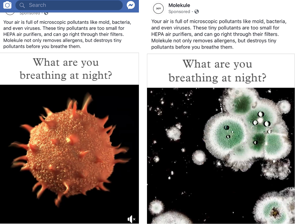 A company called Molekule is trying to sell an air purifier by scaring people on Facebook. (See screenshots below.)