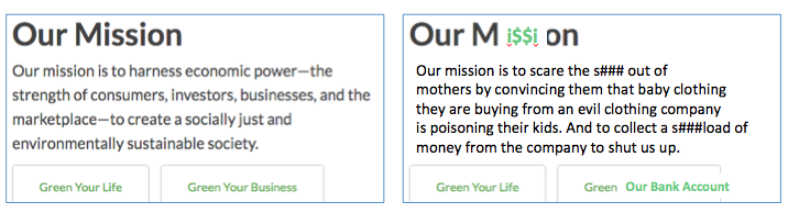 Here is the group's mission statement (left) and my personal interpretation of it (right). The group's press release issued a press release calling