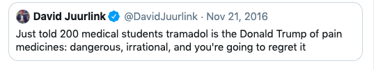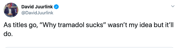 (2) David Juurlink, who is Canada's doppelganger of Andew Kolodny, absolutely hates the drug. I wonder what he would give to his 92-year old mother if she had trouble getting out of bed.