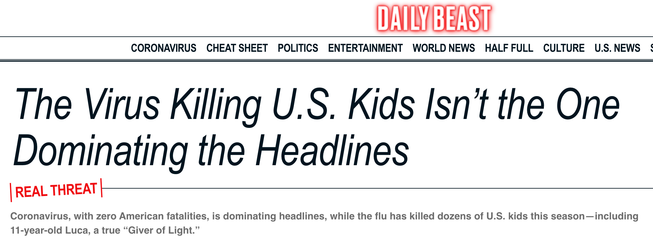 Who else noted that influenza is a bigger threat than coronavirus? The Washington Post and Daily Beast, among many other outlets.