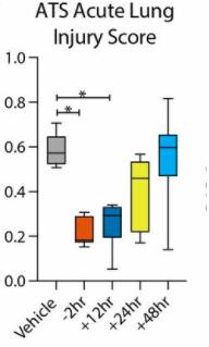 In every case, EIDD-2801 worked better when it was administered prior to infection. But there also seemed to be a 12-hour window following infection when the drug worked about as well. Here is one example (acute lung injury, Figure 3).