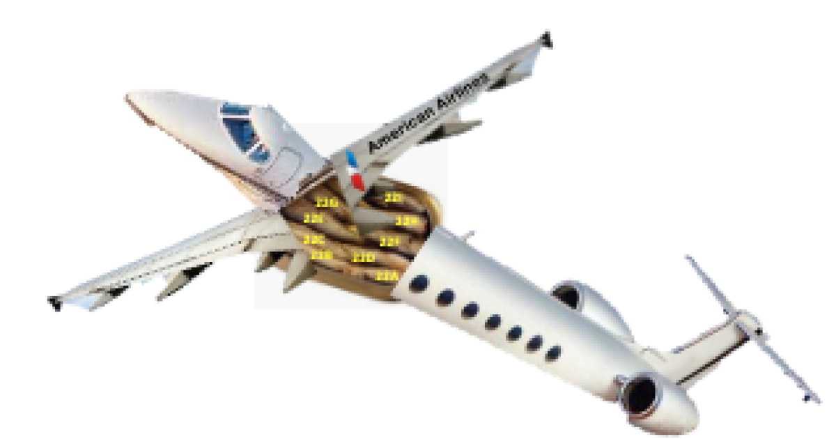 An "artist's" rendering of an American Airlines jet. The brown thing in the middle, representing row 22, is a sardine can. I've drawn some pretty terrible looking s### in my career. This may be the worst. Note the ghastly proportionality of the wings to the rest of the plane. My waffle iron has a better chance of getting off the ground.