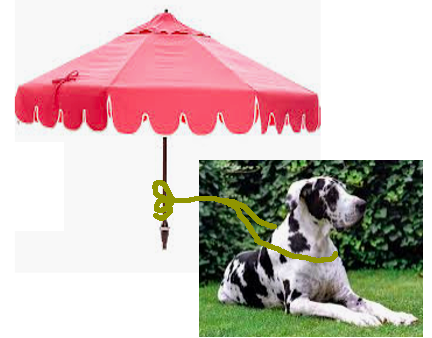Idea #3 - Get a big, lazy dog. Tie umbrella to dog.