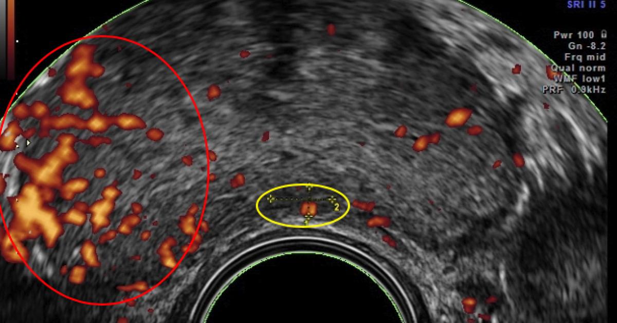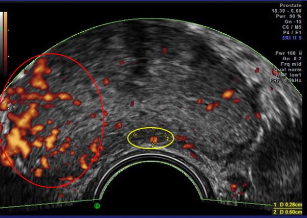 Since prostate cancer is, in many instances, slow-growing, early cases are often managed by watchful waiting, without invasive surgery or chemotherapy. Ultrasound imaging that detects increased tumor vascularity allows patients with biopsy-proven cancers to come in for regular scans to see if their disease is stable or if more aggressive treatment is indicated.