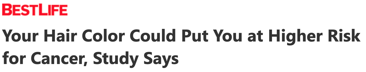 In other words, there is probably no link between natural hair color or dye use and cancer. Any links are murky and require more research. Basically, there's nothing to see here. But this is how MSN reported the story: