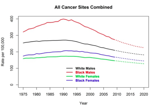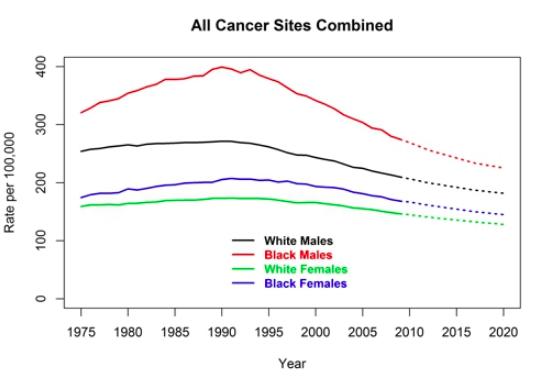 Rates of cancers of all sites 1975-2020. Source: CDC