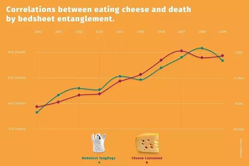 Here's another example of the difference between statistical correlation and causation. Maybe it's best to agree on a plausible path of causation before looking for the correlation. That way it avoids fishing expeditions.