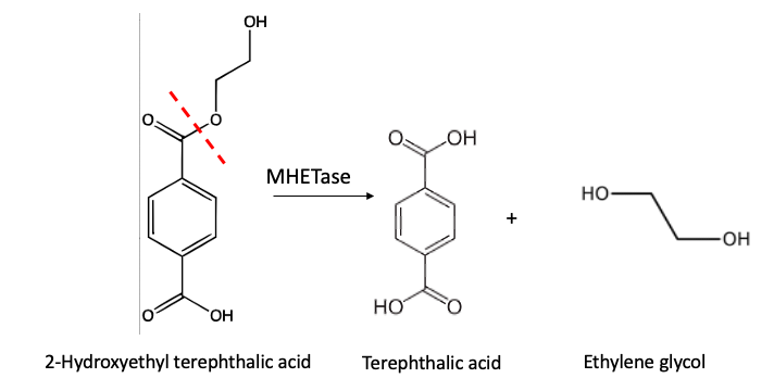 MHETase, performs a similar function – hydrolysis of an ester bond – but operates on a much smaller fragment of PET: