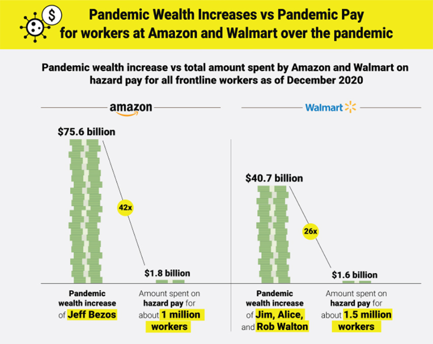 Jeff Bezos and the Walmart family experience “windfall” profits, unintentionally, from the pandemic. The graphs showed that they pursued their interests, sharing little with their workers. They undoubtedly will share less with us; they have the best tax lawyers money can buy. As the vaccinated allow us to re-open our economy with less fear, many small businesses, the collateral damage of the pandemic, will not return. The “windfall” profits of the few would help mend the broken lives of small business owners.