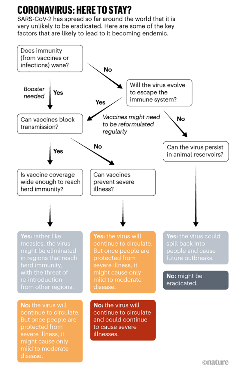 “Nature asked more than 100 immunologists, infectious-disease researchers and virologists working on the coronavirus whether it could be eradicated. Almost 90% of respondents think that the coronavirus will become endemic.”