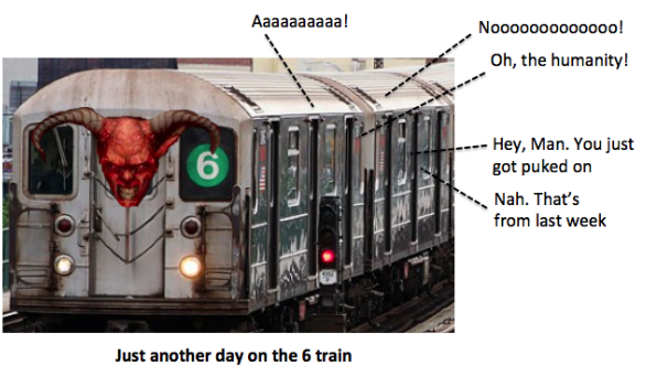 New Yorkers have long been passionately arguing about which of the 36 lines that "serve" the city is the worst. It is an argument that will be going on long after peace arrives in the Middle East. My personal "favorite" is the 6 train. I hate the 6 train at the molecular level.
