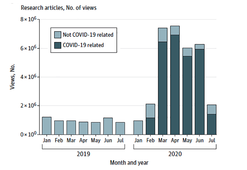 Source: Trends in Views of Articles Published in 3 Leading Medical Journals During the COVID 19 Pandemic JAMA Network Open DOI: 10.1001/jamanetworkopen.2021.6459"