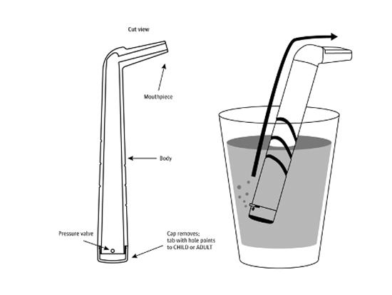 HiccAway has a small valve at the bottom of the straw, making it more difficult to pull in a liquid. The effort to suction up a bit of fluid causes the diaphragm to contract and the epiglottis to close. The study reports on the experience of 249 of the 640 who volunteered to try the device.