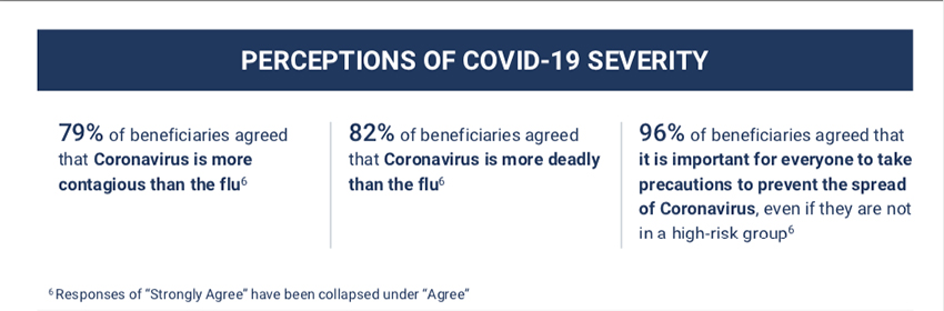 Of the 24% of beneficiaries who would probably or definitely would not get vaccinated, the top two reasons were concerns about safety (44%) and distrust of government (29%).