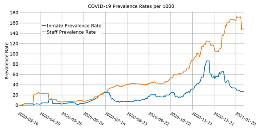 Source: Is There A Temporal Relationship Between COVID-19 Infections Among Prison Staff, Incarcerated Persons and the Larger Community in the United States? International Journal of Environmental Research and Public Health DOI: 10.3390/ijerph181.36873
